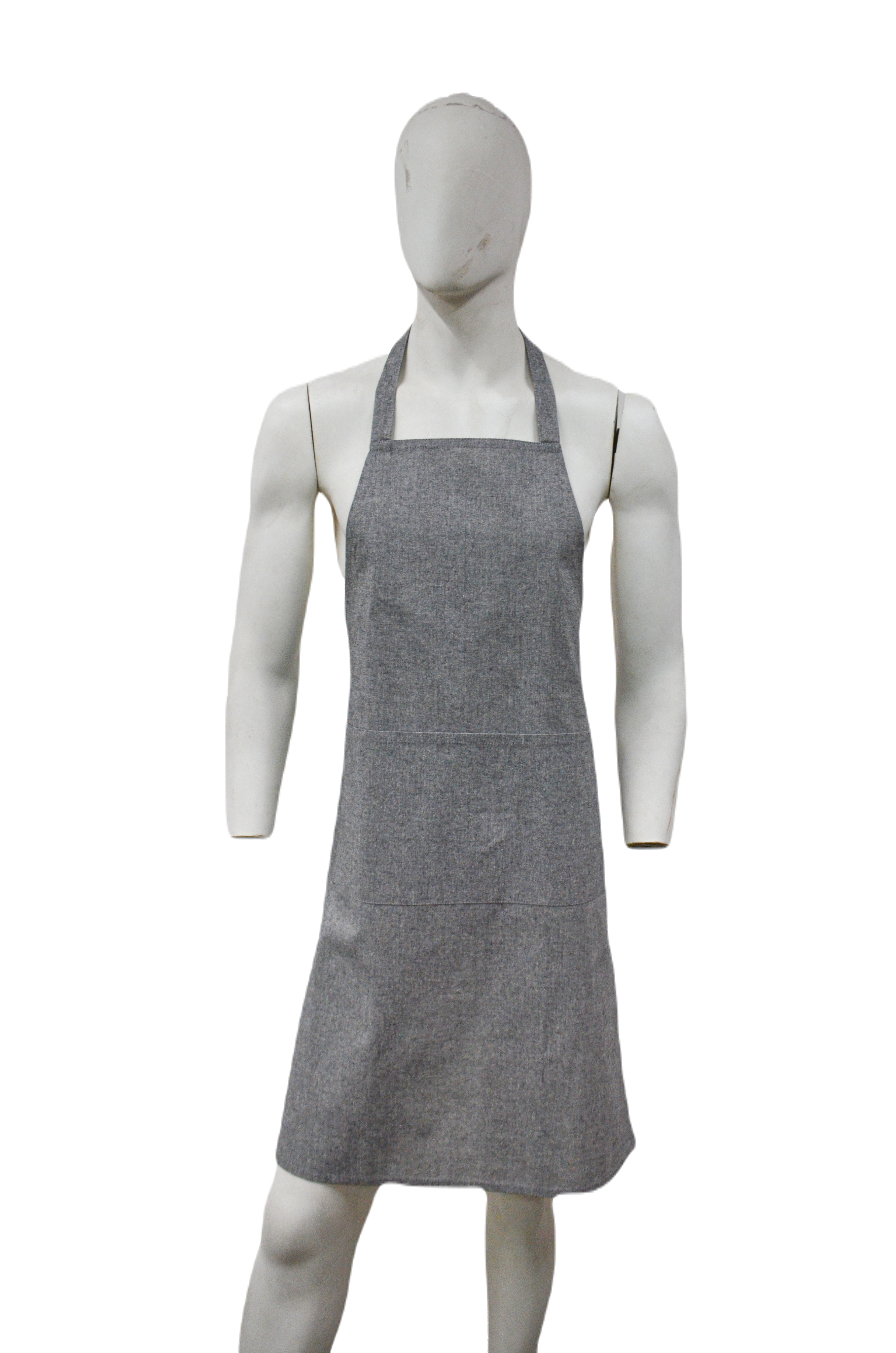 Characteristics: 140 g/m² 100% Melange Recycled Cotton Neck Loop: approx. 60 cm Waist Straps: approx. 75 cm 2 Pockets 22x20 side by side Dimensions: 60 x 90 cm Suitable for embroidery, Screen, DTG and transfer printing